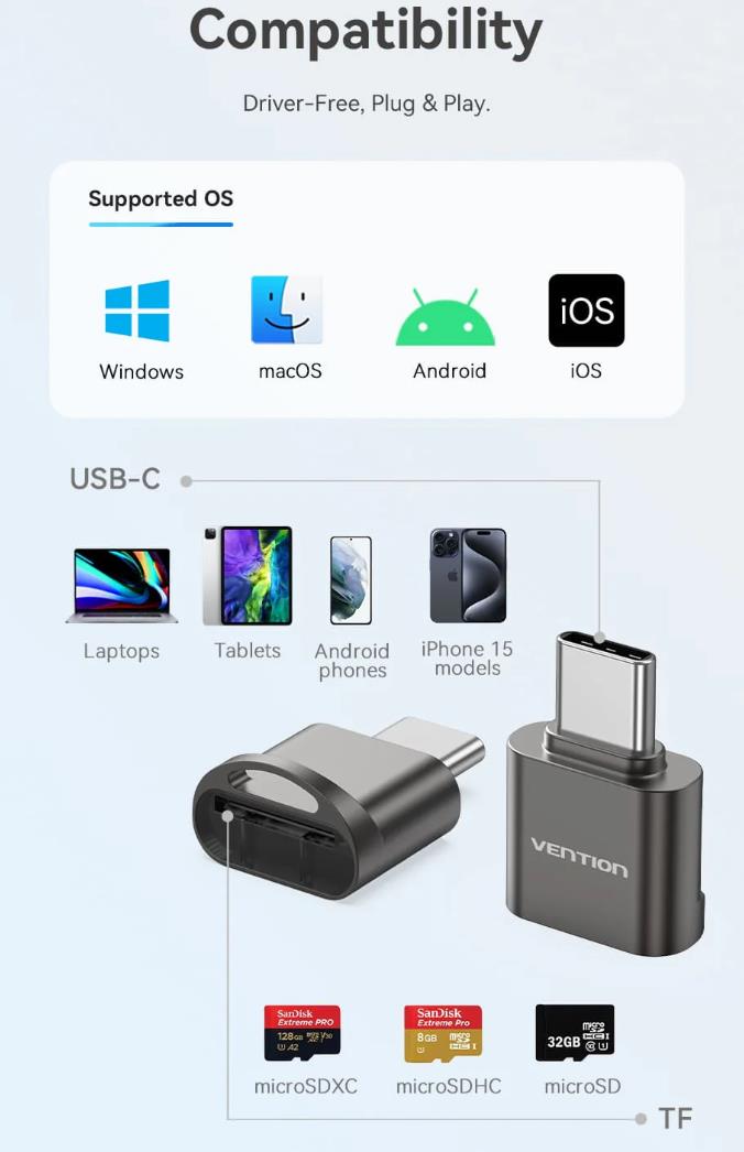 - Συμβατότητα: Plug and play χωρίς οδηγούς, υποστηρίζει TF κάρτες μέχρι 512GB