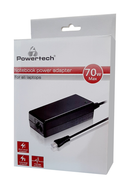 POWERTECH Φορτιστής laptop PT-854, Universal, 70W, χωρίς βύσματα, 1.5m