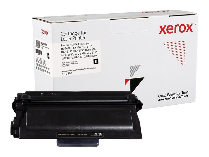 Everyday Mono Toner compatible with Brother TN-3380, by Xerox. Comes with a lifetime warranty and is designed for optimum quality, performance, reliability, and safety. Offered at a significantly lower cost compared to cartridges from original manufactures, the Everyday Toner portfolio includes cartridges for major printer and copier brands. They meet or exceed industry standards for global safety and environmental compliance and may be returned to Xerox free of charge for recycling in an environmentally responsible way.