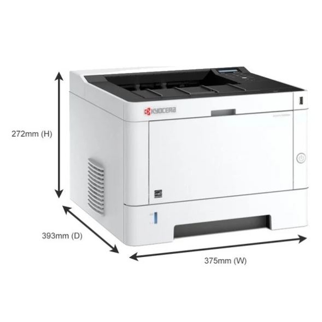 Οι φυσικές διαστάσεις του εκτυπωτή είναι συμπαγείς, διευκολύνοντας την τοποθέτησή του σε μικρότερα γραφεία, ενώ παραμένει ισχυρός στην απόδοσή του. Η τεχνολογία Kyocera ECOSYS υποστηρίζει μακροχρόνια εξαρτήματα, μειώνοντας το συνολικό κόστος κατοχής και ελαχιστοποιώντας την περιβαλλοντική επιβάρυνση. Αυτός ο εκτυπωτής έχει σχεδιαστεί για βαριά χρήση, ικανός να διαχειριστεί έως 50.000 σελίδες το μήνα.
