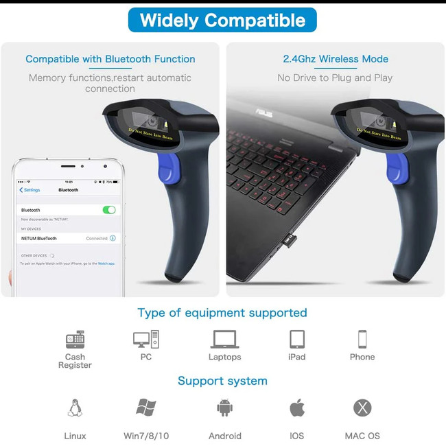 Barcode Scanner Netum 3IN1 2D BT/2.4G/WIRED SUPPORT IOS/ANDROID