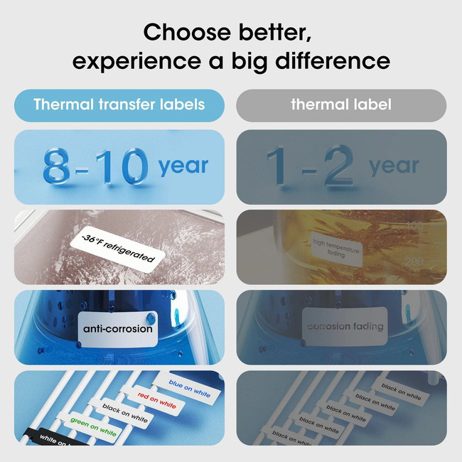 - Σε σύγκριση με το θερμικό χαρτί, το περιεχόμενο που εκτυπώνεται σε θερμικές μεταφερόμενες ετικέτες είναι πιο ανθεκτικό, καθαρό, ανθεκτικό στη φθορά και τις γρατζουνιές.