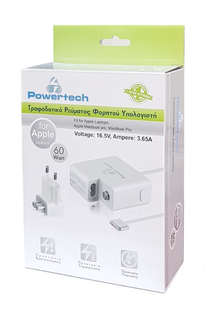 POWERTECH φορτιστής LAPTOP 60W - APPLE 16.5V - 3.65A