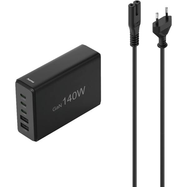 Φορτιστής Laptop 140W Hama GaN PD/QC 3x USB-C, 2x USB-A Black