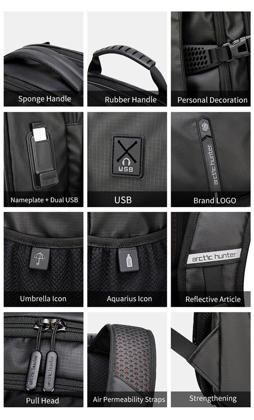 ARCTIC HUNTER τσάντα πλάτης B00388 με θήκη laptop 15.6", USB, 27L, μαύρη
