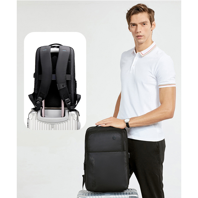 GOLDEN WOLF τσάντα πλάτης GB00399, με θήκη laptop 15.6", 20L, μαύρη