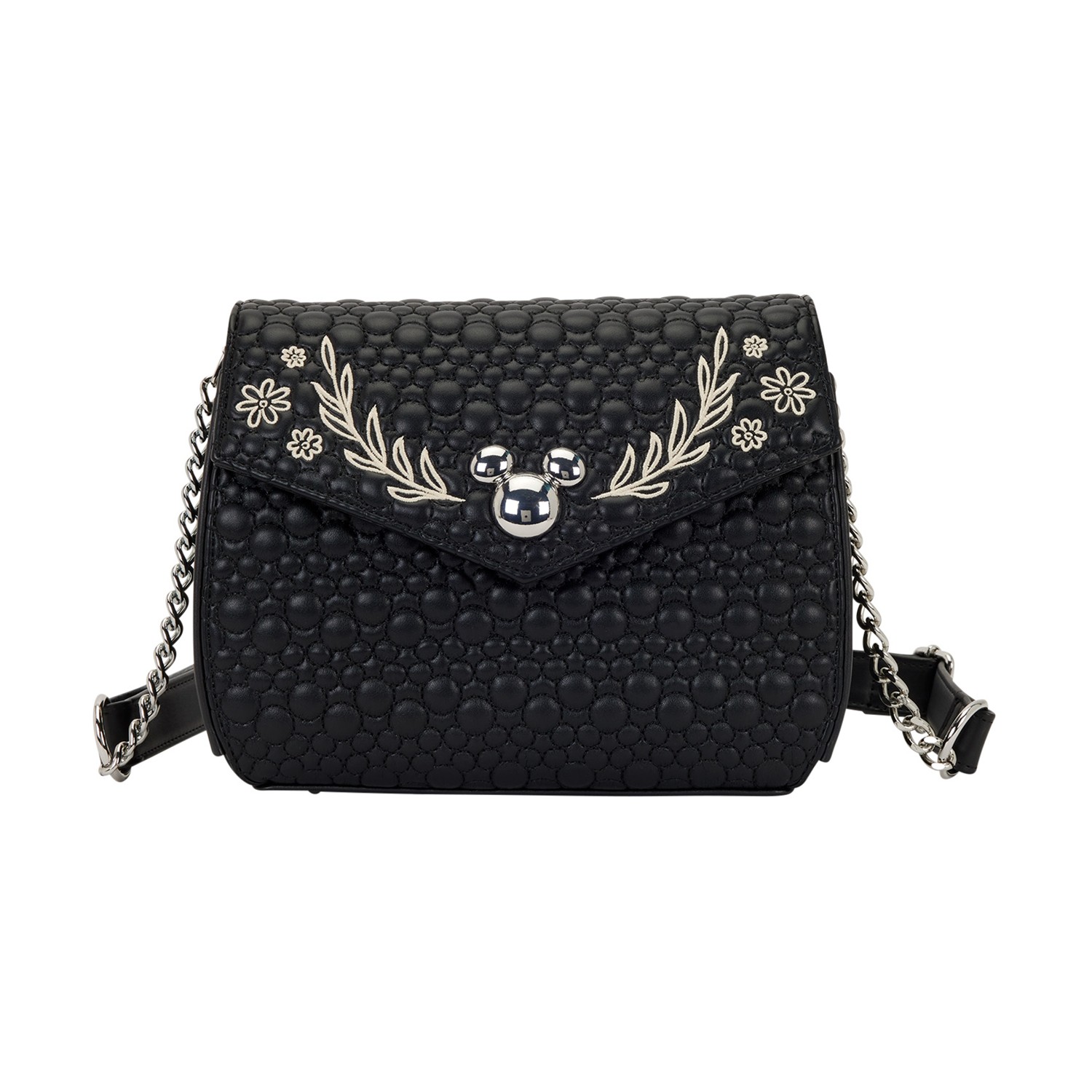 Front DetailMetal Mickey silhouette charm on front flap