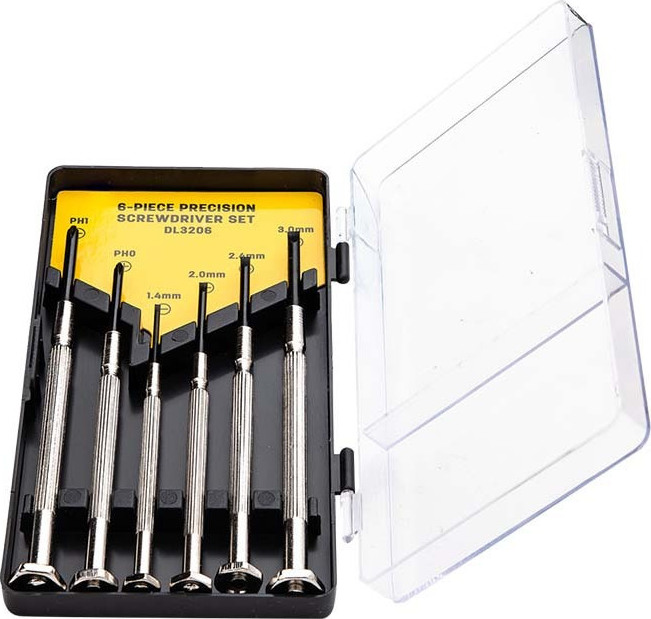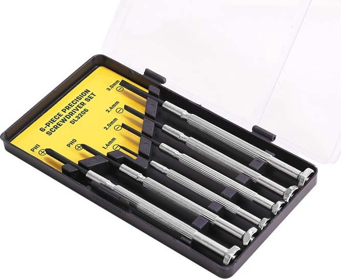 Σετ κατσαβιδιών ακριβείας που αποτελείται από 2 σταυρωτά και 4 ίσια κατσαβίδια.
