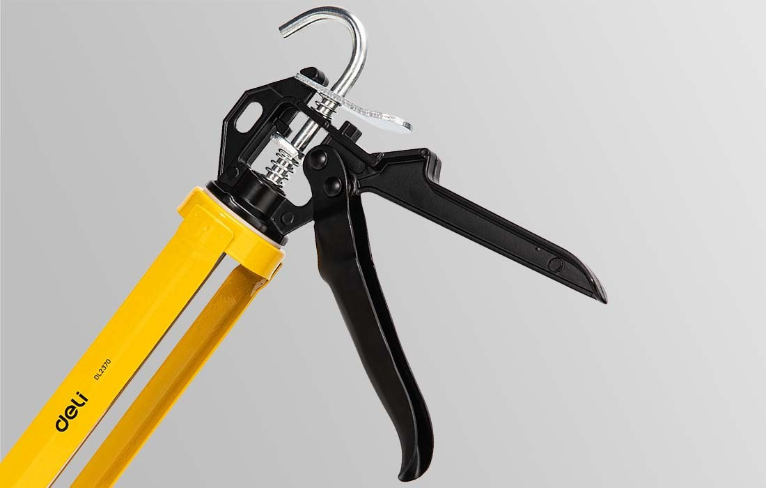 Πιστόλι σιλικόνης DELI ανοικτού τύπου, ιδανικό για φυσίγγια σιλικόνης μήκους έως 230mm. Είναι κατασκευασμένο από ατσάλι και αλουμίνιο υψηλής ποιότητας και διαθέτει εργονομική λαβή.