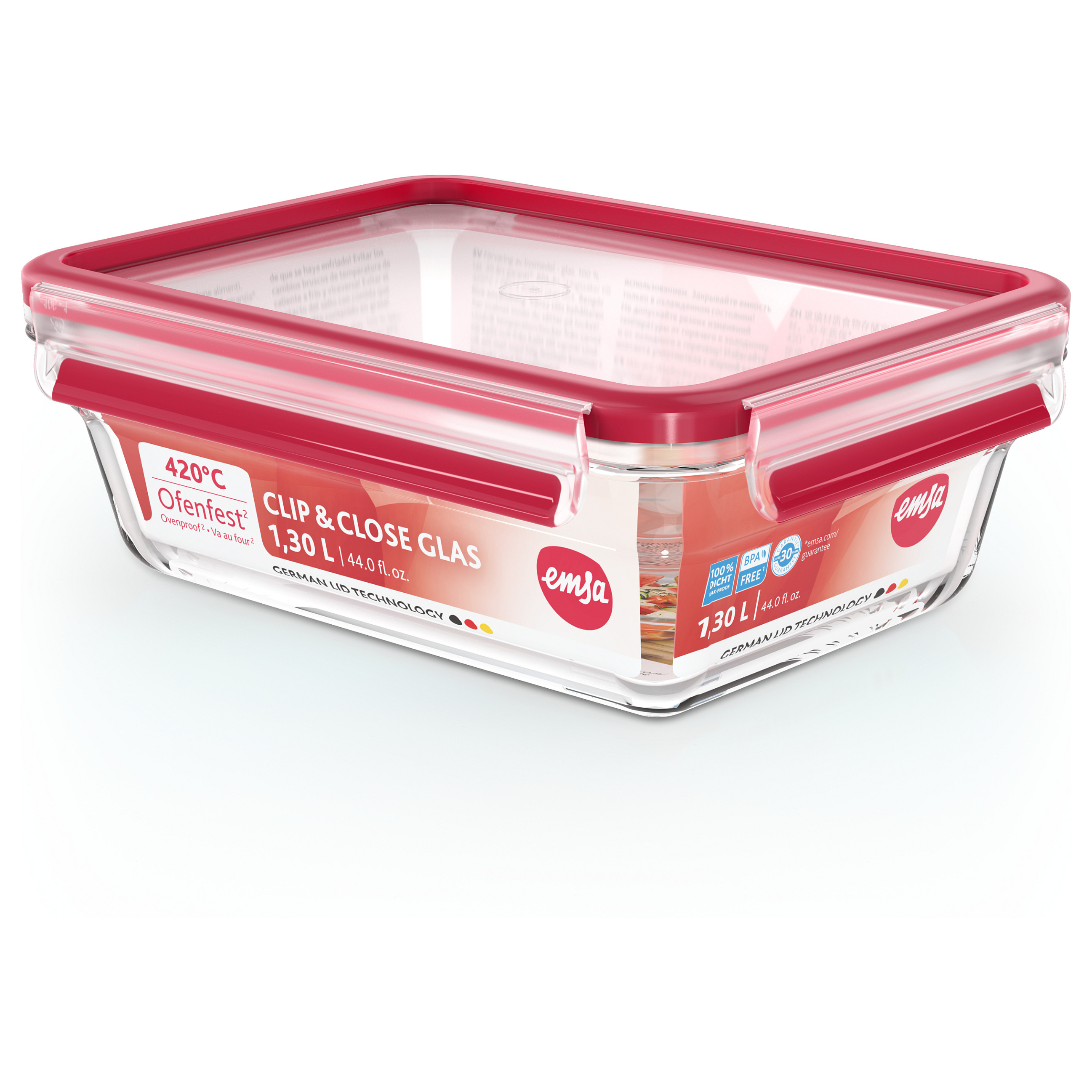 Δοχείο Φαγητού Emsa N10410 Clip & Close Glass Container 1.3 L Transparent/Red