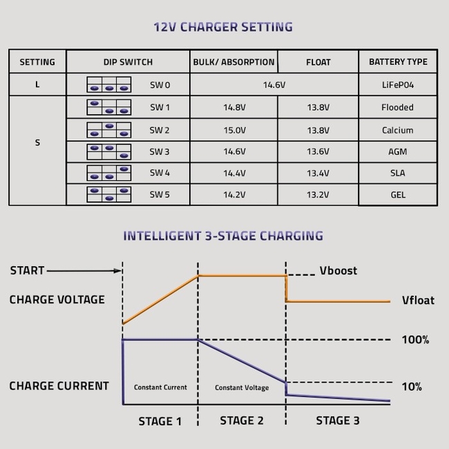 - Συμβατό με τύπους μπαταριών: AGM, GEL, SLA, WET, DEEP CYCLE, EFB και μπαταρίες ασβεστίου.