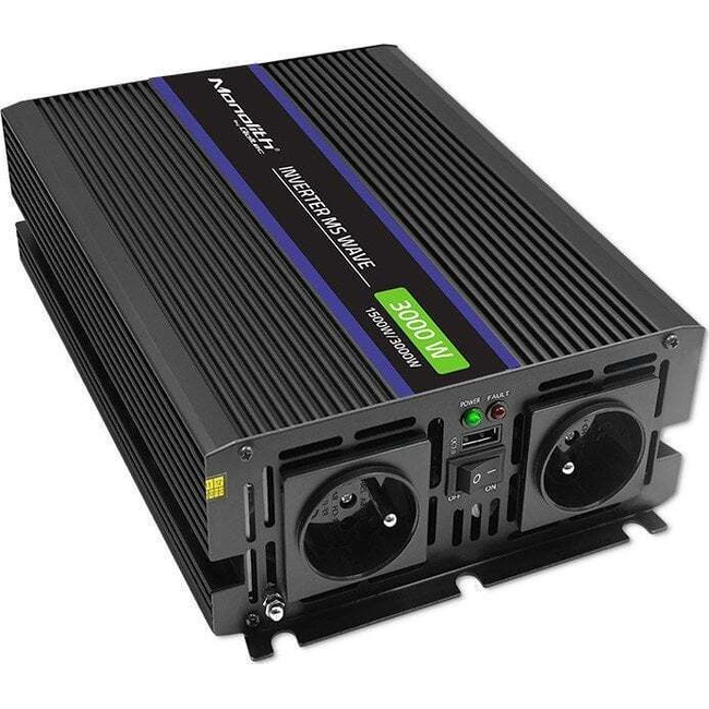 Ο Qoltec Monolith 3000 MS Inverter είναι ένας εξαιρετικός μετατροπέας ισχύος αυτοκινήτου που μετατρέπει 12V DC από μια μπαταρία οχήματος σε 230V AC. Με τη δυνατότητα να παρέχει έως και 1500W συνεχούς ισχύος και κορυφαία αιχμή 3000W, είναι ιδανικός για διάφορες ηλεκτρονικές συσκευές αυτοκινήτου και φορητές συσκευές.