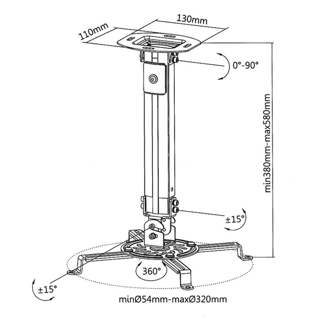 - Ρύθμιση οριζόντιας κλίσης: + 15°/ -15°