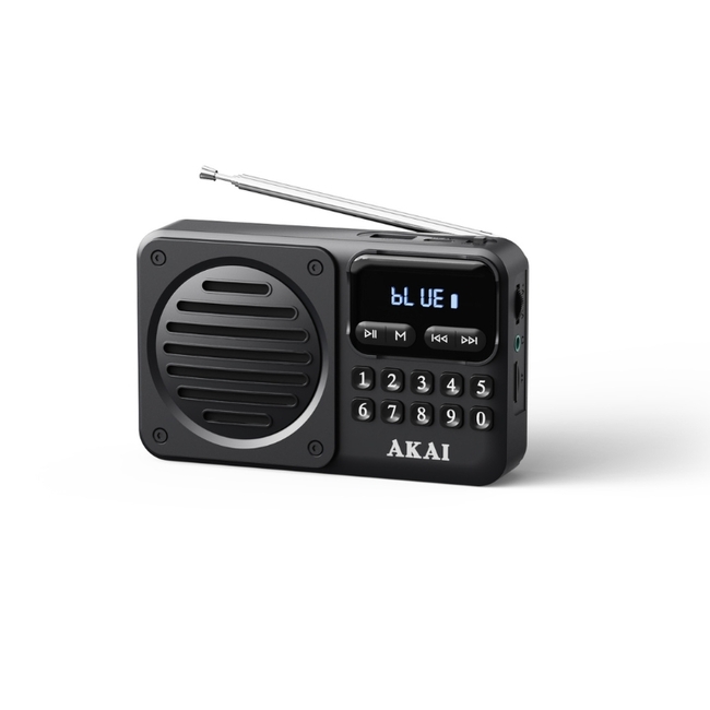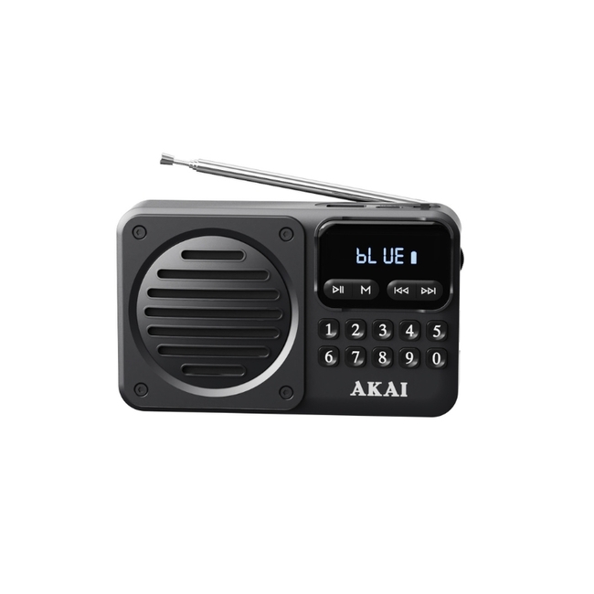 APR-300BK – Ρετρό εμφάνιση - Μοντέρνες λειτουργίες. Συμπαγές, ελαφρύ και γεμάτο γοητεία – το AKAI APR-300 φέρνει τη νοσταλγική αίσθηση των κλασικών ραδιοφώνων στη σύγχρονη εποχή. Με Bluetooth 5.3, αναπαραγωγή MP3 μέσω USB ή microSD και ενσωματωμένο ραδιόφωνο FM με τηλεσκοπική κεραία, είναι ιδανικό για να απολαμβάνετε τα αγαπημένα σας τραγούδια οπουδήποτε. Με βάρος μόλις 160 γραμμάρια και εξοπλισμένο με επαναφορτιζόμενη μπαταρία, το APR-300 είναι ιδανικό για το σπίτι, το γραφείο ή εν κινήσει. Τεχνικές Προδιαγραφές Έκδοση Bluetooth: 5.3 Ισχύς μετάδοσης Bluetooth: -1.53 ​​​​dBm Ισχύς RMS: 2.5W Ισχύς PMPO: 5W Μέγεθος ηχείου: 2.25” Μορφή αναπαραγωγής ήχου: MP3 Εμβέλεια ραδιοφώνου FM: 87.5–108 MHz Χαρακτηριστικά ραδιοφώνου: Τηλεσκοπική κεραία, συντονισμός PLL Είσοδοι πολυμέσων: USB, TF/MicroSD/MMC Έξοδος ακουστικών: Ναι Χρόνος αναπαραγωγής: Έως 6 ώρες σε 50% ένταση Περίπου 4 ώρες σε 75% ένταση Χρόνος φόρτισης: 3–4 ώρες Απόκριση συχνότητας: 80Hz – 20kHz Αντίσταση: 3Ω Λόγος σήματος προς θόρυβο (S/N): 55dB Παραμόρφωση: 10% Μπαταρία: 3.7V / 1200mAh επαναφορτιζόμενη Πηγή τροφοδοσίας: DC 5V Οθόνη: LED / Ψηφιακή Θήκη υλικό: ABS