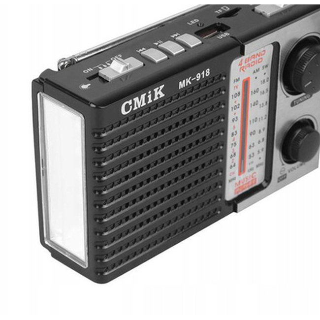 CMIK φορητό ραδιόφωνο & ηχείο MK-918 με φακό, BT/USB/TF/AUX, μαύρο