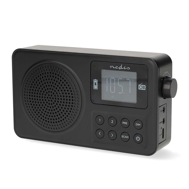 Φορητό Ραδιόφωνο Nedis Φορητό, επαναφορτιζόμενο και Ψηφιακό FM με οθόνη LCD, Μαύρο