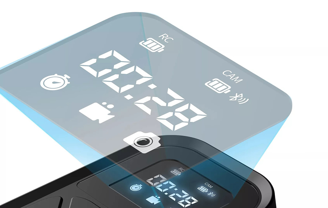 The T10 remote control can work up to 10 hours on a single charge. The long working time is influenced by the applied Bluetooth technology with low power consumption. Convenient magnetic charging is possible thanks to the included cable, and the practical screen displays information about the charge level of both the remote control and the camera.