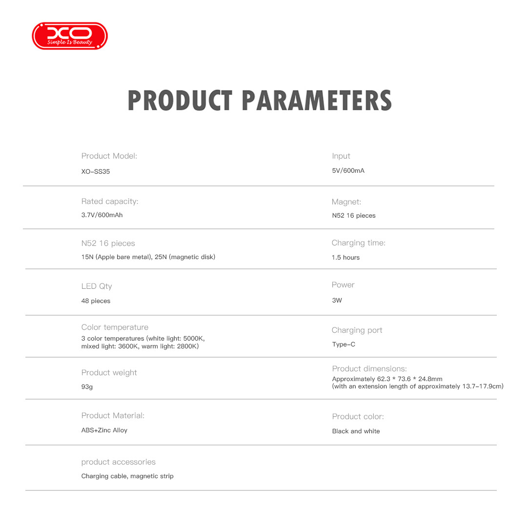 XO SS35 Πολυλειτουργικό Μαγνητικό Πτυσσόμενο Φως Κινητού Λευκό
