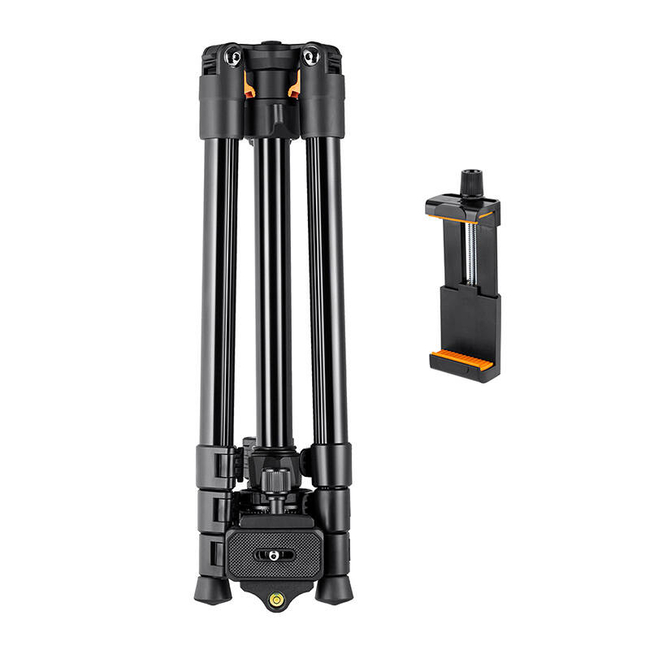 The 1/4" quick release plate fits most cameras, DSLR cameras, projectors, and telescopes. An additional holder allows you to attach a phone.