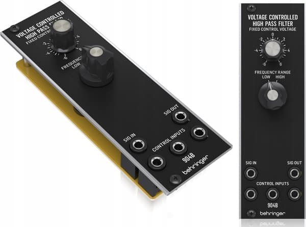 Ο Behringer 904B Voltage Controlled High Pass Filter είναι ένα υψηλής ποιότητας αναλογικό και Eurorack module σχεδιασμένο για προηγμένη διαμόρφωση ήχου μέσα σε συστήματα αρθρωτών συνθεσάιζερ. Αυτό το φίλτρο προσφέρει ένα ζεστό και πλούσιο αναλογικό high-pass VCF (Voltage Controlled Filter) που διαμορφώνει το ηχητικό σας σήμα μειώνοντας τις συχνότητες κάτω από ένα επιλεγμένο σημείο κοπής, επιτρέποντας στις υψηλότερες συχνότητες να περάσουν χωρίς προβλήματα.