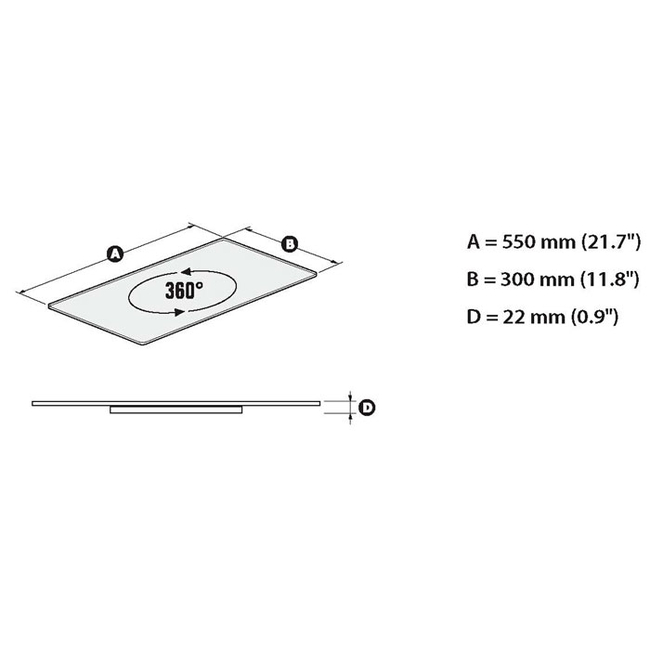 - Διαστάσεις (ΜxΠxΥ): 550 x 300 x 22 mm