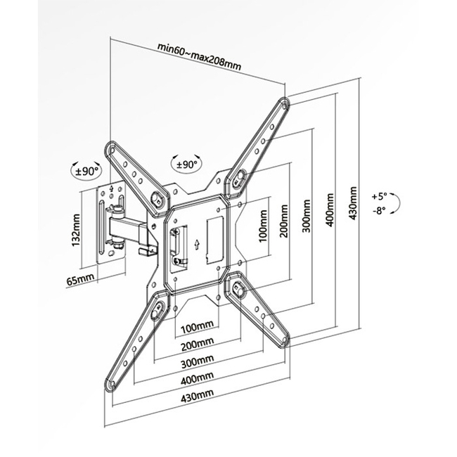 - Ρύθμιση Βραχίονα: Ο ρυθμιζόμενος βραχίονας προσαρμόζεται σε διάφορα μεγέθη οθονών δίνοντας ευελιξία.