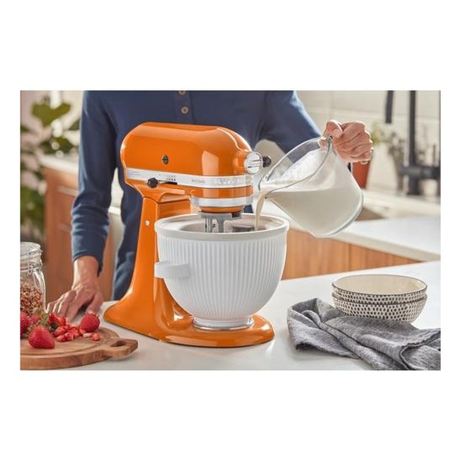 Η KitchenAid 5KSMICM είναι ένα εξαιρετικό αξεσουάρ που μετατρέπει τον μίκτη KitchenAid σε μια ισχυρή μηχανή παρασκευής παγωτού. Με αυτό το καινοτόμο αξεσουάρ, μπορείτε να δημιουργήσετε μια ποικιλία κατεψυγμένων λιχουδιών όπως παγωτά, σορμπέ και παγωμένο γιαούρτι, όλα σε λιγότερο από 30 λεπτά.