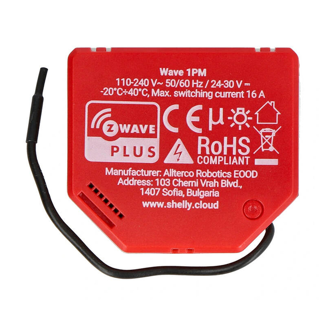 Έξυπνος Ενδιάμεσος Διακόπτης Shelly Qubino Wave1PM (Κόκκινο)