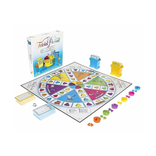 Η Hasbro Trivial Pursuit Family Edition είναι ένα συναρπαστικό επιτραπέζιο παιχνίδι σχεδιασμένο ειδικά για οικογένειες. Σκοπός του είναι να προσφέρει μια διασκεδαστική και εκπαιδευτική εμπειρία μέσω μιας ευρείας γκάμας ερωτήσεων trivia.