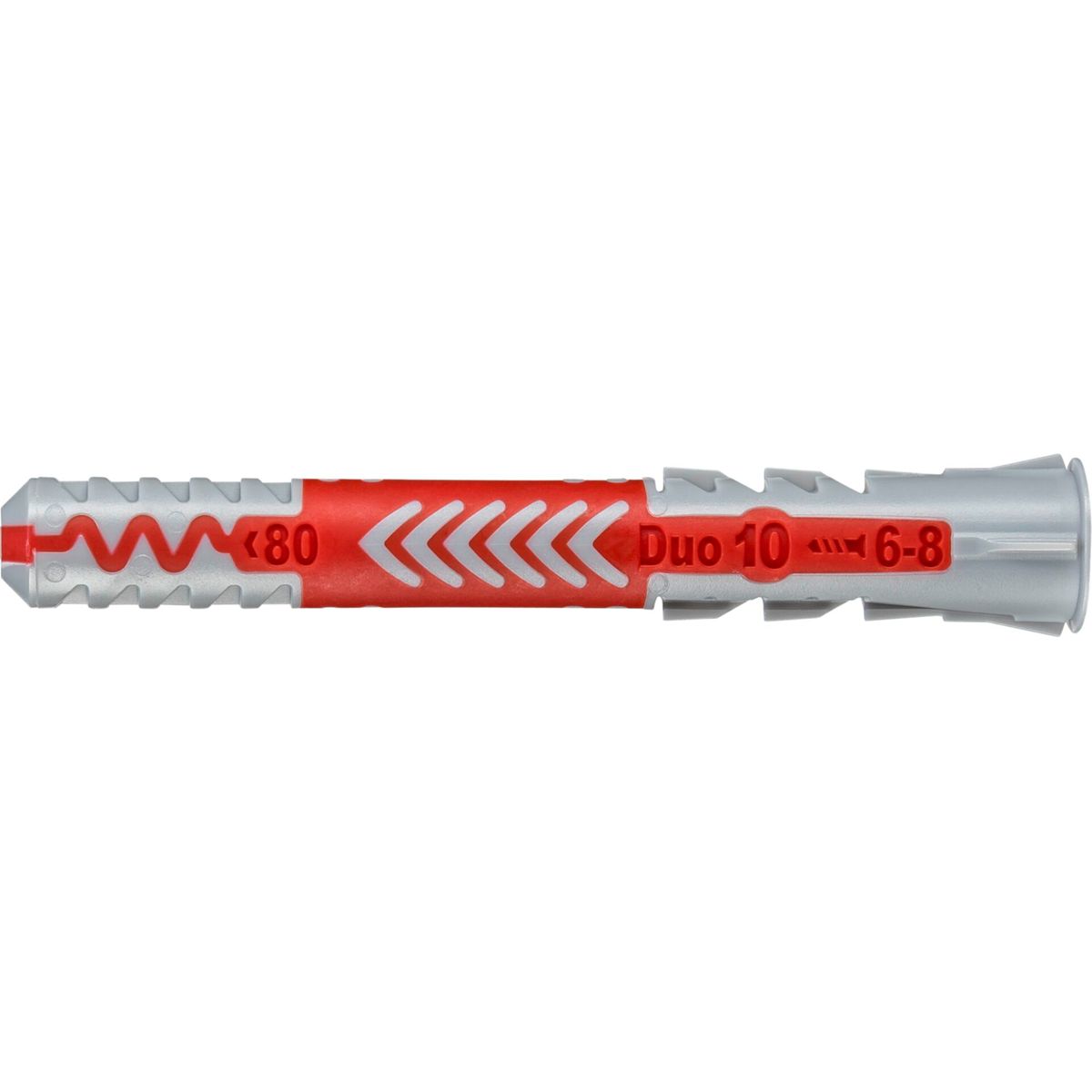 Το Fischer DUOPOWER 10x80 είναι ένα βύσμα στερέωσης 2 συστατικών για ασφαλή τοποθέτηση σε συμπαγή, διάτρητα και γυψοσανιδένια δομικά υλικά. Ο συνδυασμός δύο διαφορετικών υλικών επιτρέπει στο βύσμα να ενεργοποιεί αυτόματα τη σωστή λειτουργία στερέωσης ανάλογα με το υπόστρωμα: διαστολή σε συμπαγή...