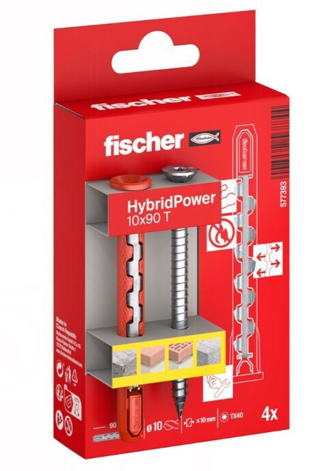 Υλικά στερέωσης Fischer HybridPower 10x90 T K υβριδικό βύσμα 10x90 mm με βίδες TX40, σετ 4 τεμαχίων