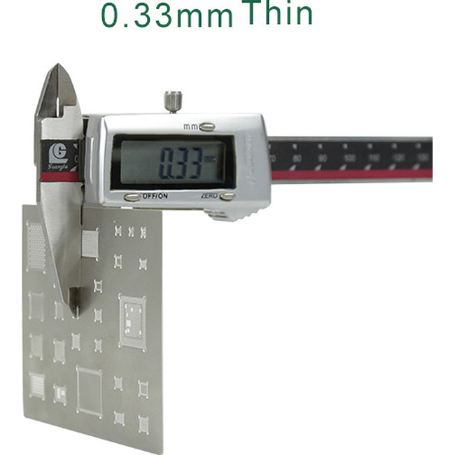 Stencil υψηλής ποιότητας για reballing συσκευών iPhone. Περιλαμβάνει όλα τα εξαρτήματα BGA του κινητού και το πάχος του είναι μόλις 0.33mm.
