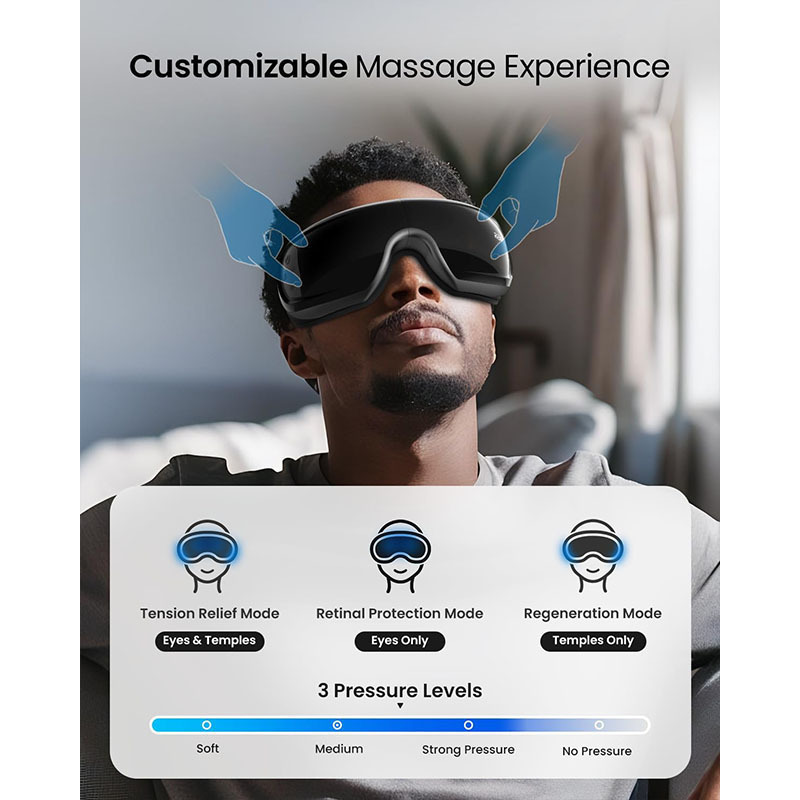 Massage Modes3 modes: Tension Relief (eyes and temples), Retinal Protection (eyes only), Regenerasi Mode (temples only)