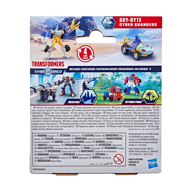 Η Hasbro Transformers: Cyberworld - Sky-Byte (G1050) φιγούρα δράσης έχει ύψος 4 ίντσες (10 cm) και προσφέρει μια απολαυστική εμπειρία για παιδιά ηλικίας 6 ετών και άνω. Αυτή η φιγούρα μεταμορφώνεται από ρομπότ σε όχημα καρχαρία σε μόνο 4 απλά βήματα, εξασφαλίζοντας ότι ακόμη και οι νεότεροι θαυμαστές μπορούν να απολαύσουν τη διασκέδαση της μεταμόρφωσης.