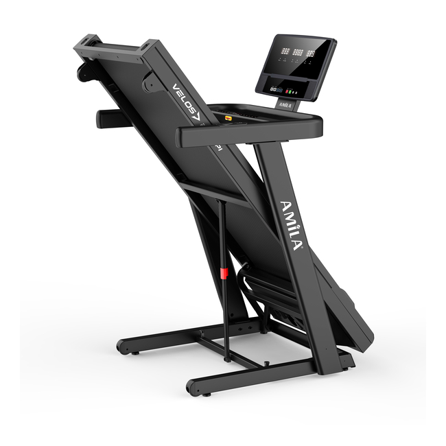 Όπως όλοι οι οικιακοί διάδρομοι AMILA έτσι και ο Velos F300PI διαθέτει ένα σύστημα αναδίπλωσης που σας επιτρέπει να τον αναδιπλώσετε ώστε να τον μετακινήσετε και να τον αποθηκεύσετε εύκολα. Με τη βοήθεια του αμορτισέρ ο διάδρομος αναδιπλώνεται εύκολα και κλειδώνει σε κάθετη θέση για να μειώσετε τον χώρο που καταλαμβάνει.