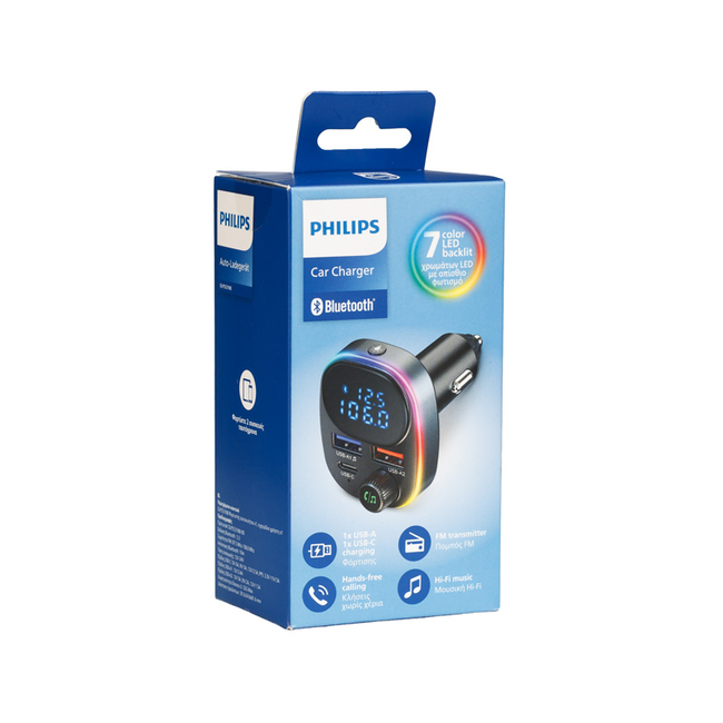 FM Transmitter Αυτοκινήτου Philips DLP5531NB/GRS με Type-C και USB