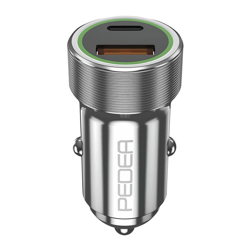 Φορτιστής Αυτοκινήτου Pedea 20W USB-C (PD) KFZ-Fast 12/24V - 2-Ports Mehrfach with USB-C and USB-A, Silver