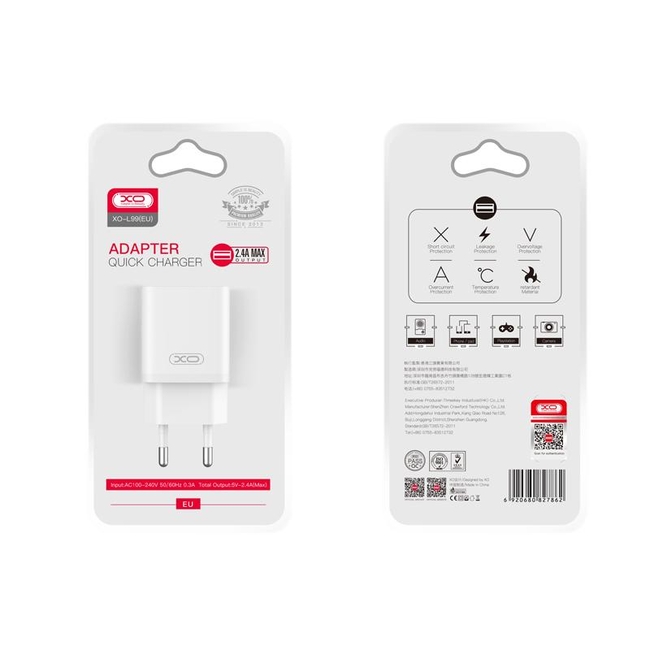 Φορτιστής Πρίζας XO L99 2.4A με Lightning Καλώδιο (NB103)