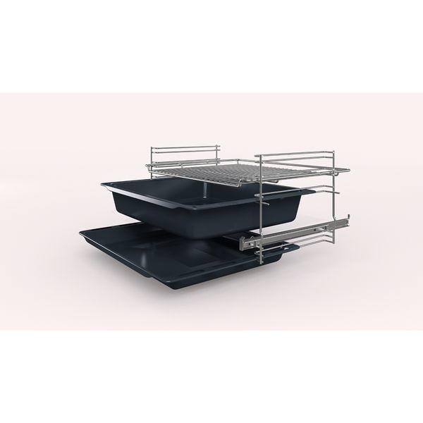 - Τηλεσκοπικός μηχανισμός 1 επιπέδου , 1 x Σχάρα συνδυασμού, εμαγιέ βαθύ ταψί 10 lt, 1 x Ταψί γενικής χρήσης