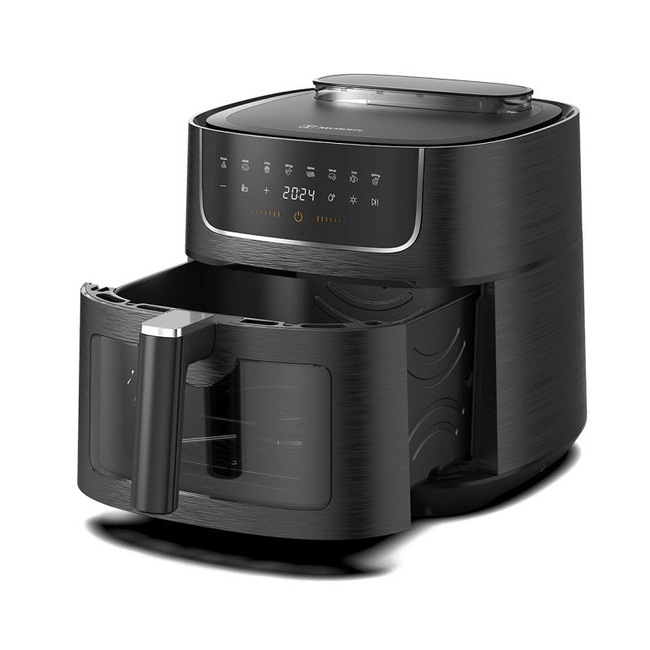 Η συσκευή διαθέτει ένα μεγάλο παράθυρο με διπλό τζάμι στο καλάθι, επιτρέποντάς σας να παρακολουθείτε εύκολα τη διαδικασία μαγειρέματος χωρίς να ανοίγετε τη συσκευή. Επιπλέον, ο ενσωματωμένος εσωτερικός φωτισμός βελτιώνει την ορατότητα κατά τη διάρκεια του μαγειρέματος.