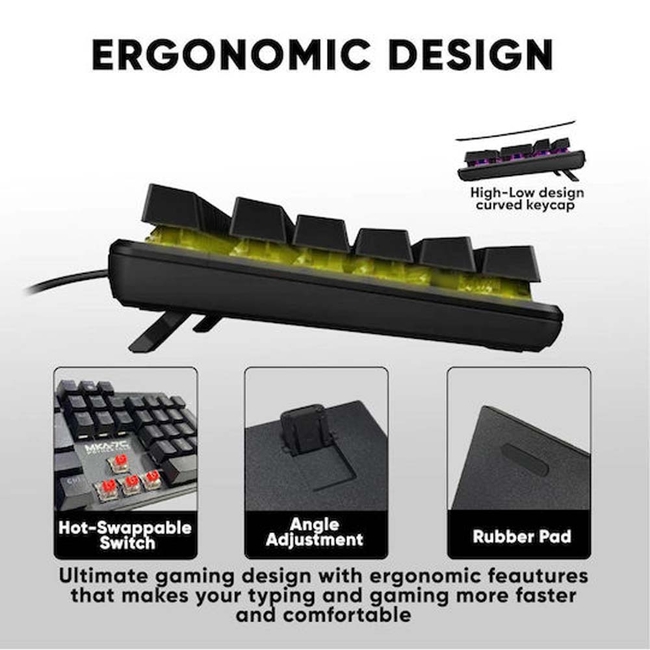 Gaming Πληκτρολόγιο Armaggeddon Mechanical Hot-Swap 12Fx Backlight Blue Switch Mka-7C 2024 Black Clicky