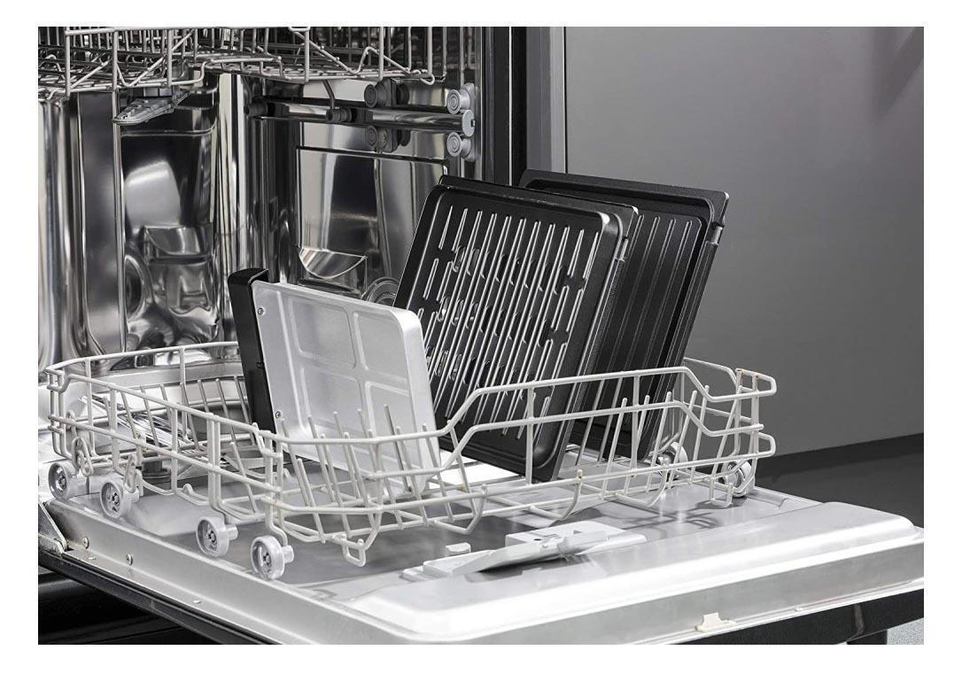 CleanupSide clips/buttons for plate removal; dishwasher safe removable parts