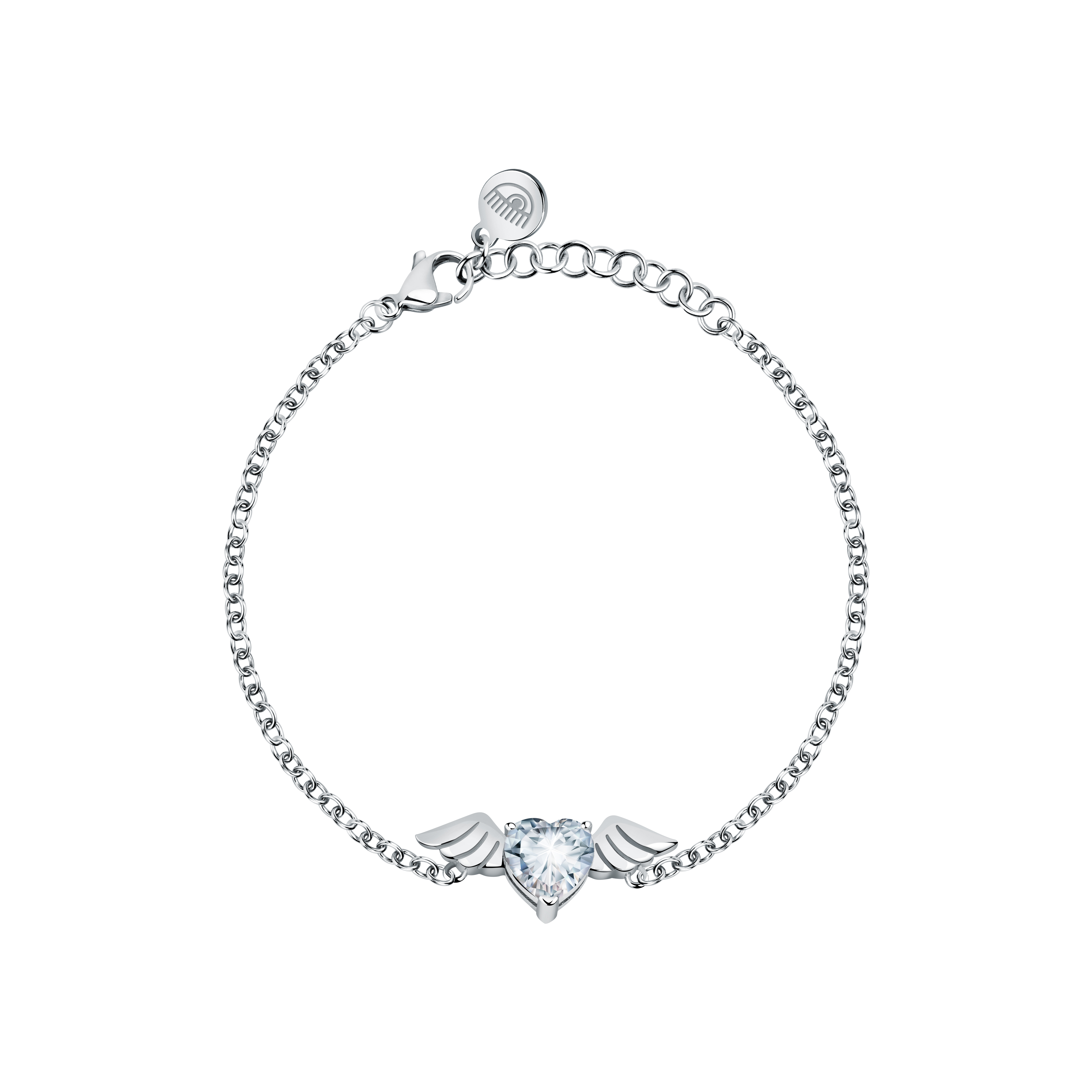 WOMEN BRACELET CHIARA FERRAGNI J19AVH04 (16+3CM ). Material: BRASS. Colour: SILVER. Measures: 16+3CM.. . CUPIDO BR.SIV/WHITE CZ WITH WINGS 16+3CM