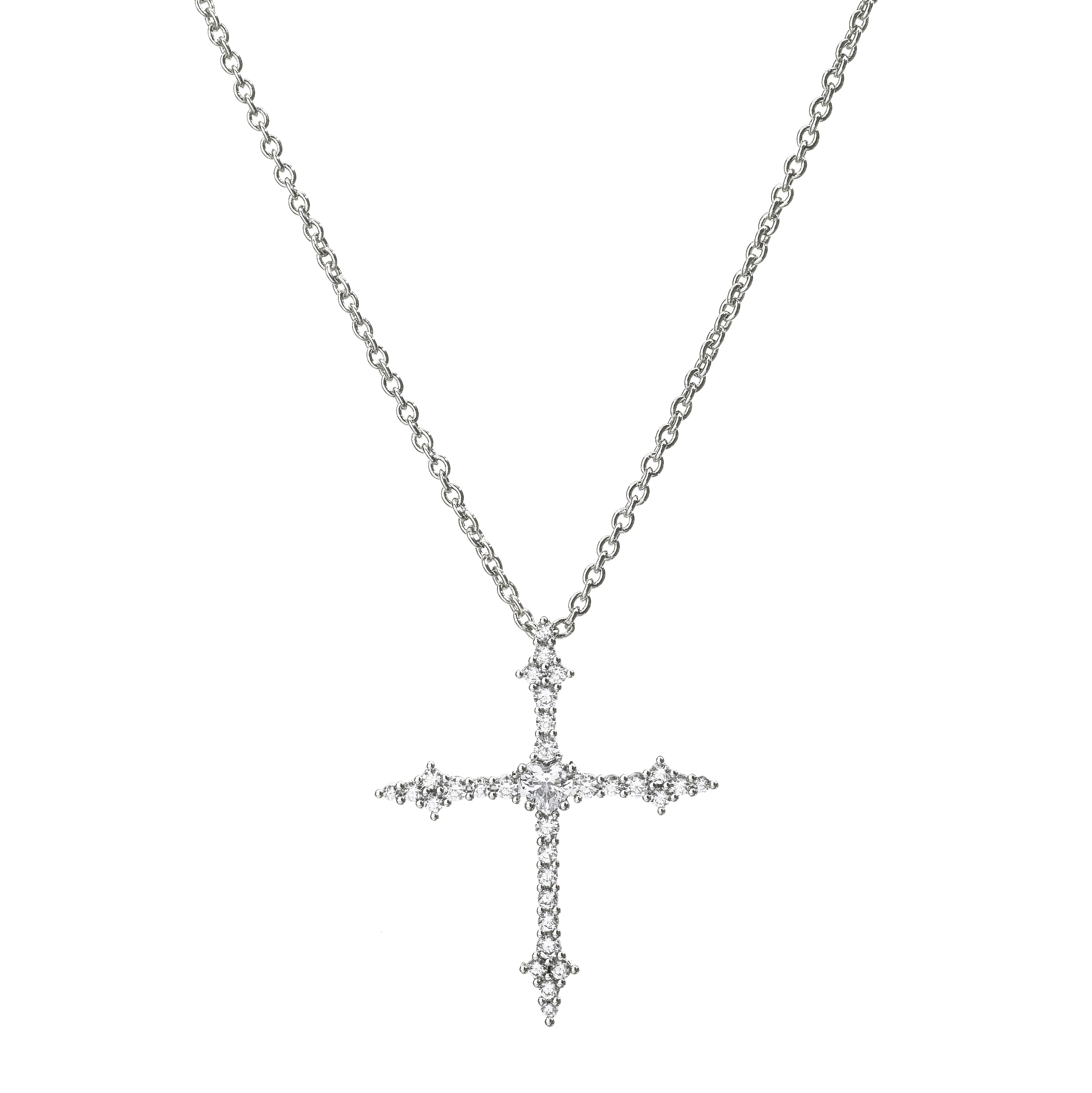 WOMEN PENDANT CHIARA FERRAGNI J19AWC07 (42+8CM ). Material: BRASS. Colour: WHITE. Measures: 42+8CM.. . CROCI PEND.WH CZ CROSS+RH PLATED 42+8CM