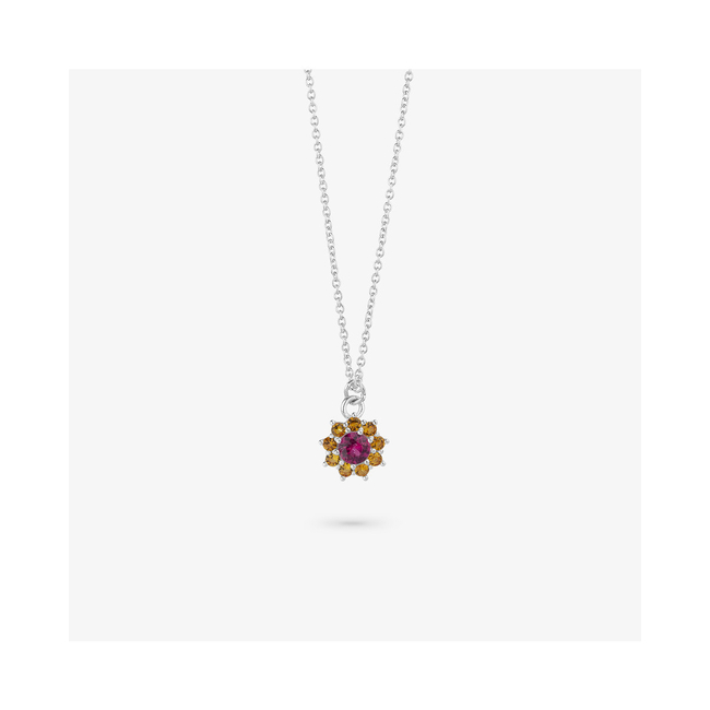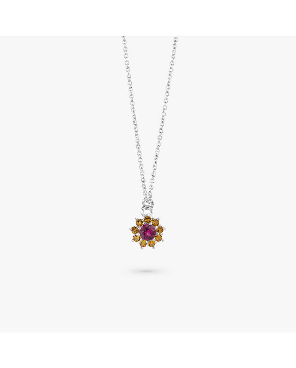 WOMEN NECKLACE RADIANT RY000118 (40CM ). Material: STAINLESS STEEL. Colour: GREY. Measures: 40CM.. . Silver Pink Stone Rosettes Necklace
