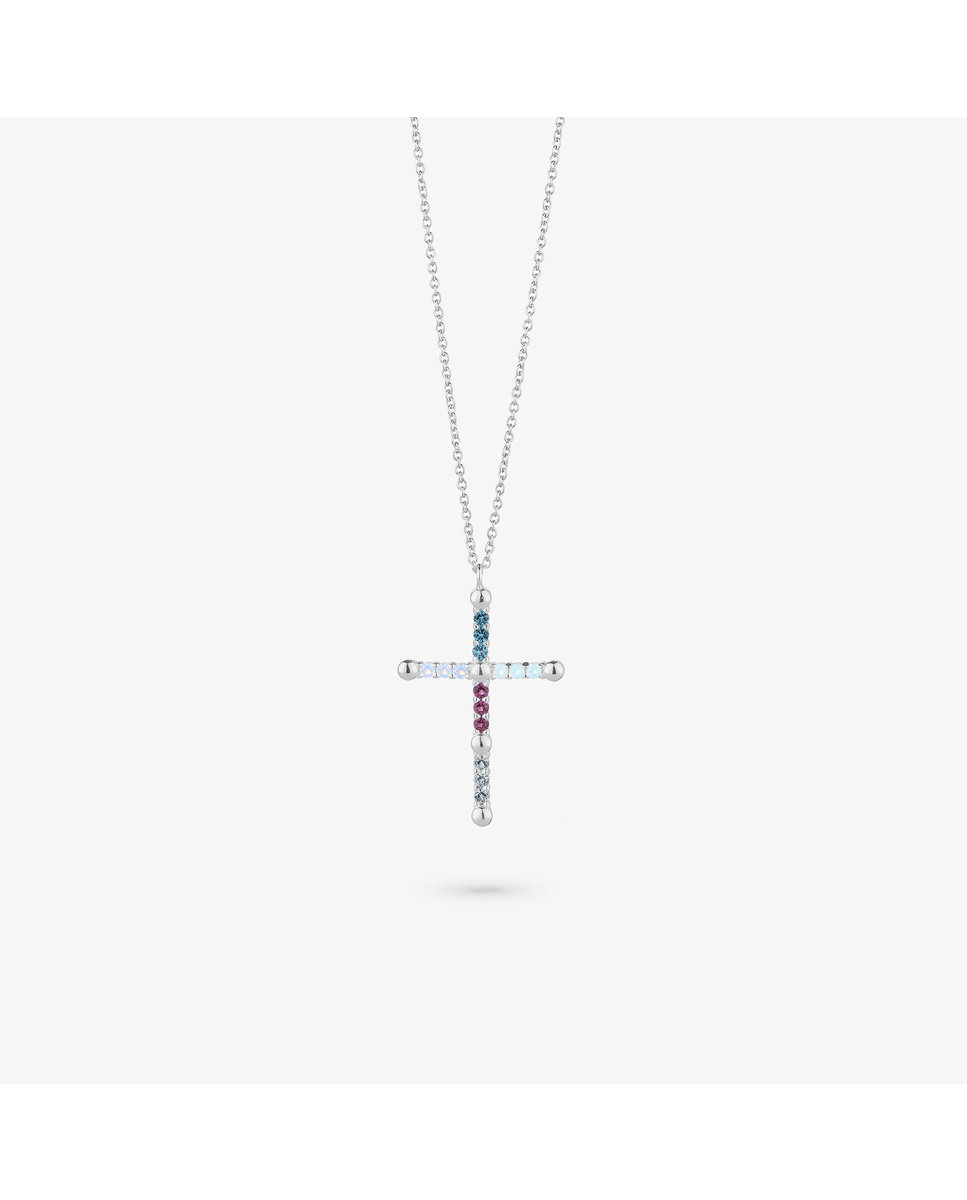 WOMEN NECKLACE RADIANT RY000125 (45CM ). Material: STAINLESS STEEL. Colour: GREY. Measures: 45CM.. . SS cross necklace with colored stones CRUCES