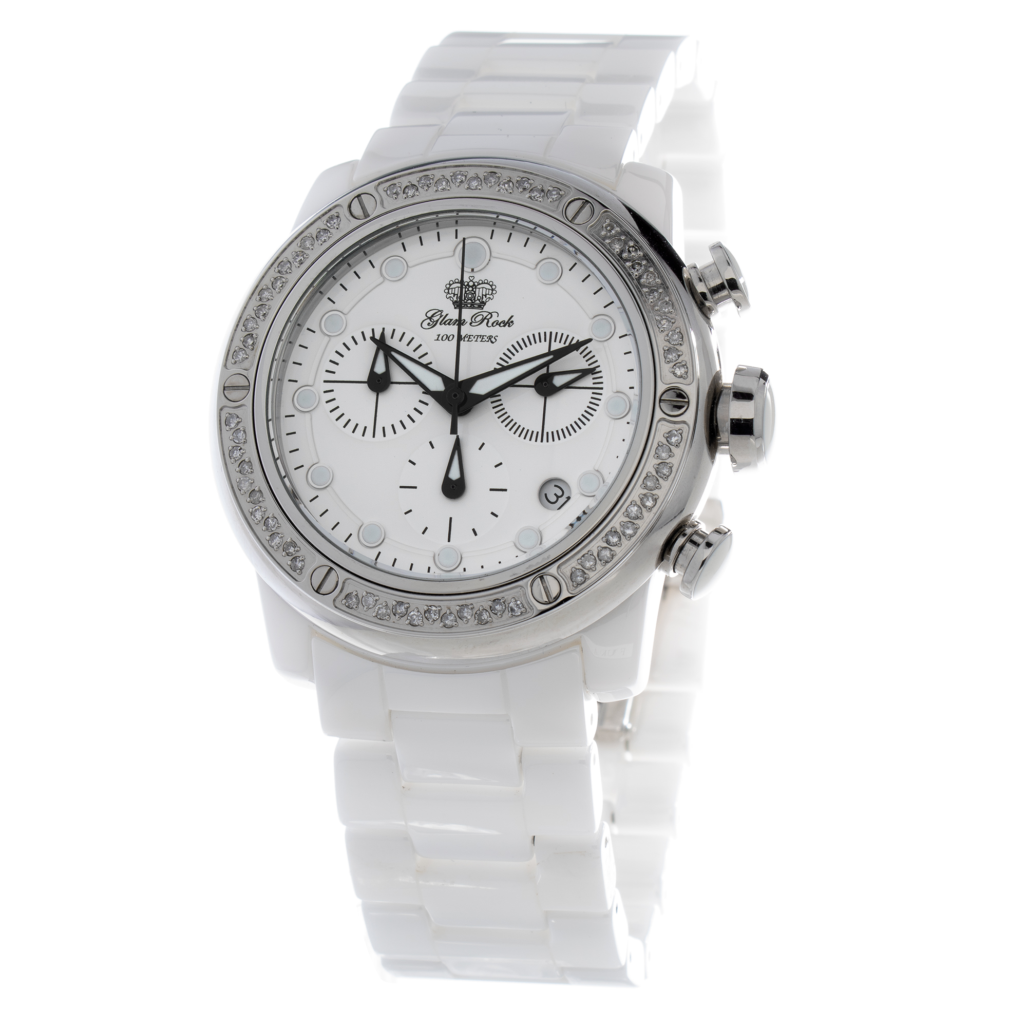 Γυναικείο Ρολόι Glam Rock Gr50116D (42mm) Κεραμικό Μπρασελέ Λευκό