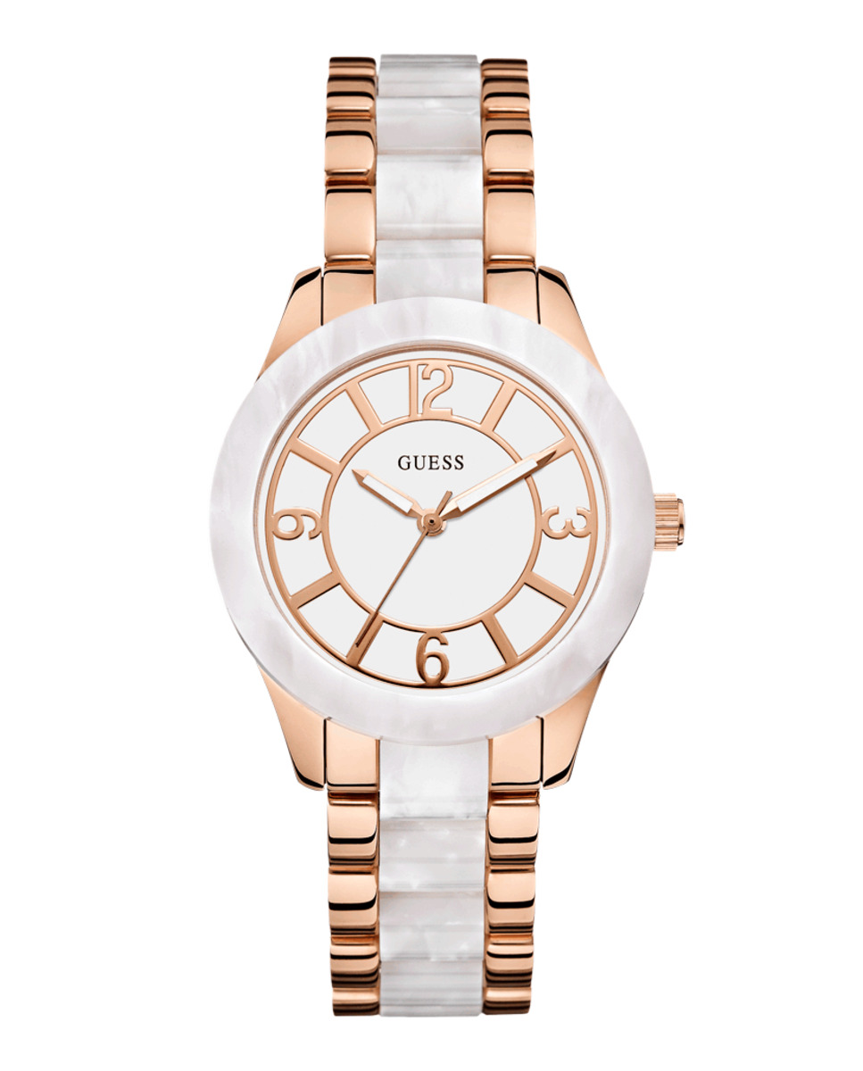 Γυναικείο Ρολόι Guess W0074L2 (37mm) Μεταλλικό Μπρασελέ Ροζ και Νακαρ
