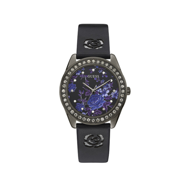Γυναικείο Ρολόι Guess W1277L1 (40 mm) Δερμάτινο Λουράκι Μαύρο