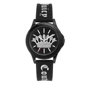 WOMEN WATCH JUICY COUTURE JC1325BKBK (38 MM). Type of mechanism: QUARTZ. Display: ANALOGICAL. Material of case: METAL. Colour of case: BLACK. Material of bracelet: SILICONE. Colour of bracelet: BLACK. Dial Colour: BLACK. Glass type: MINERAL. Clousure: BUCKLE. Diameter of dial: 38 MM. Submersible: NO